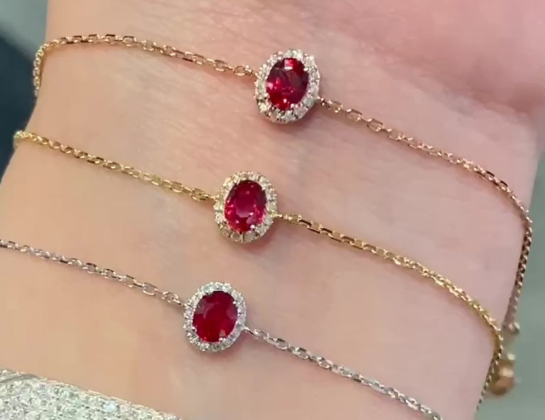 18K Gold Natural Ruby Surrounded by Natural Diamond bracelet