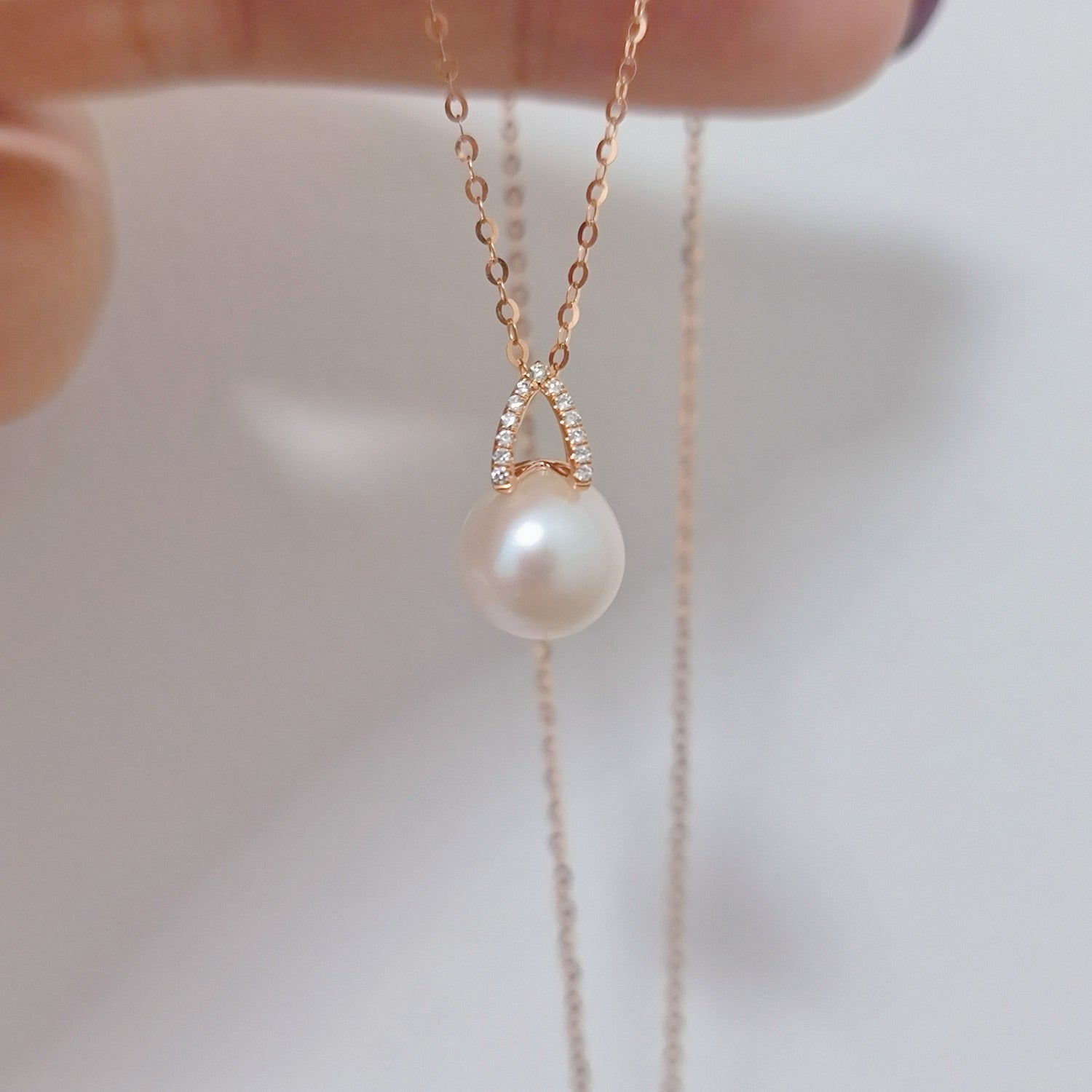 18K玫瑰金 Akoya珍珠配天然鑽石項鏈