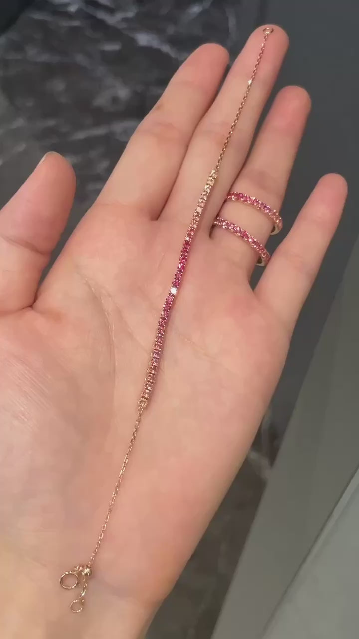 18K玫瑰金 天然粉橙色藍寶漸變手鏈